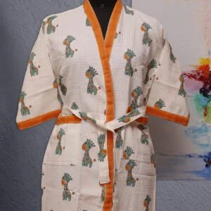 Bathrobes for kids are cozy and comfortable garments designed for them to wear after bathing or swimming. Crafted from 100% cotton, these robes provide warmth and help absorb moisture. These are handcrafted and feature playful designs and vibrant colours, adding a touch of fun to the post-bath routine.